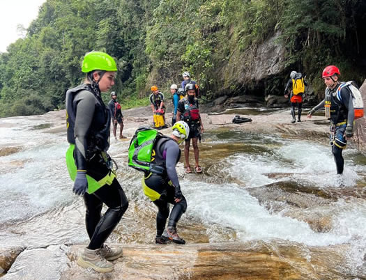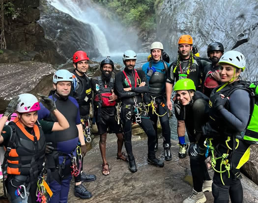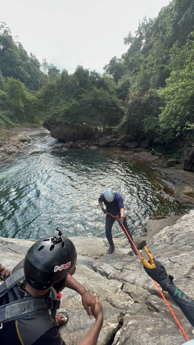 Nestled in the lush rainforests of Sri Lanka’s adventure capital, Kitulgala, canyoning is an exhilarating activity that blends natural beauty with heart-pounding excitement. Participants navigate through rocky gorges, cascading waterfalls, and crystal-clear pools using a mix of techniques such as sliding down smooth rock surfaces, rappelling (abseiling) down waterfalls, jumping into deep natural pools, and rafting through fast-flowing streams.